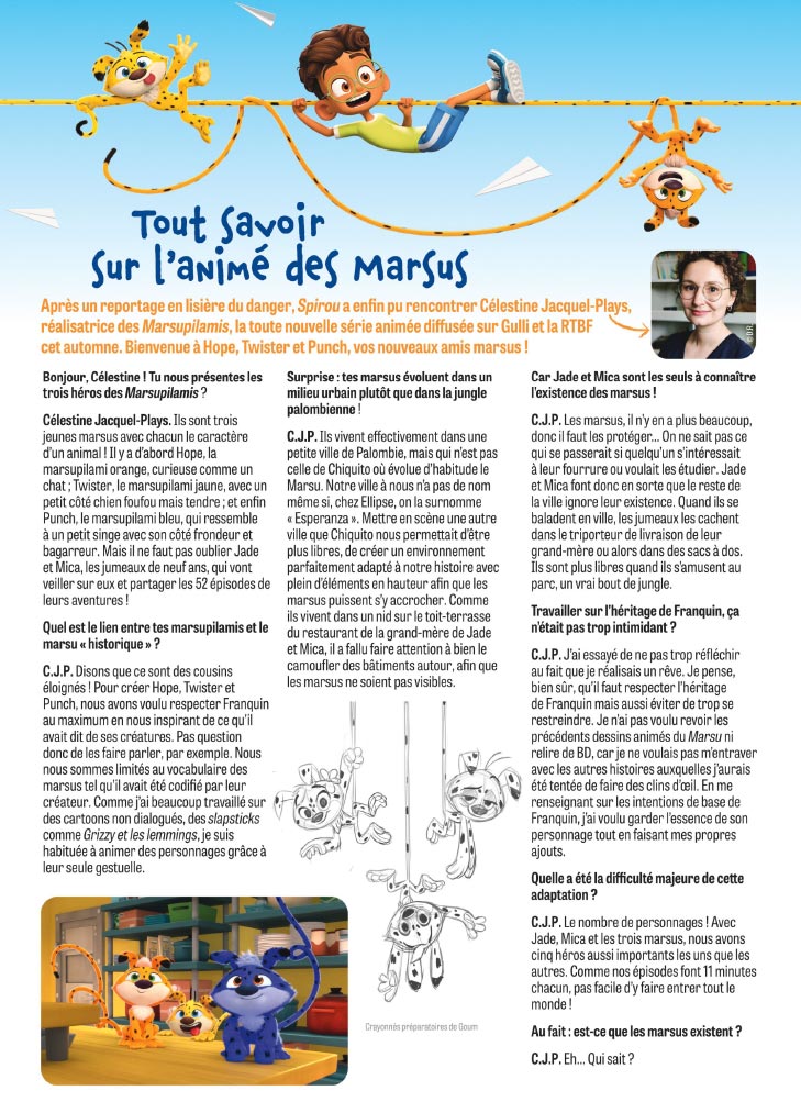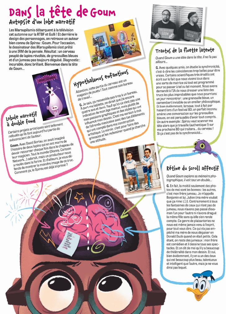 Les Marsupilamis débarquent à la télévision cet automne sur la RTBF et Gulli, et dès cette semaine, dans le journal Spirou ! Derrière le design des personnages, on retrouve un auteur bien connu de SPIROU : Goum, qui pour l’occasion, s’est prêté à une IRM de la pensée…
