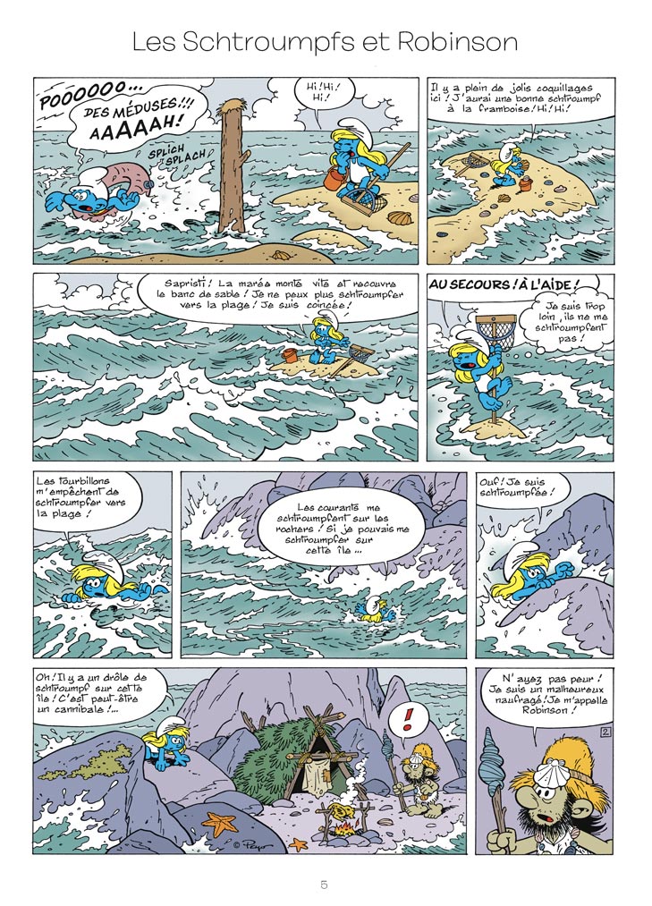 Cette semaine, le journal Spirou vous emmène en vacances, au bord de mer, avec les Schtroumpfs et un certain Robinson…