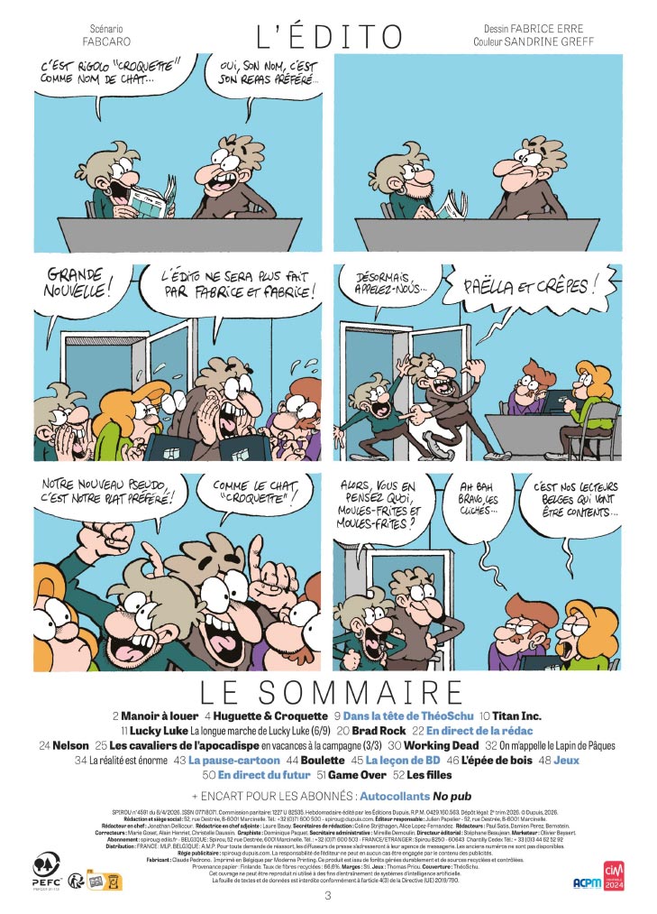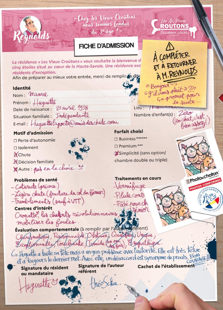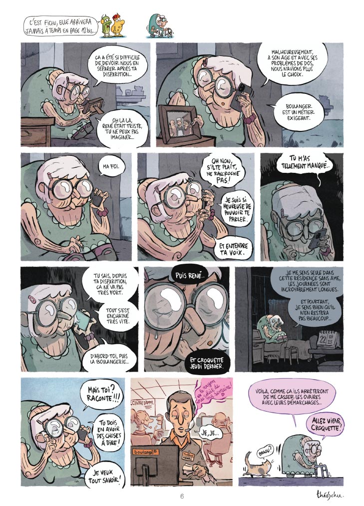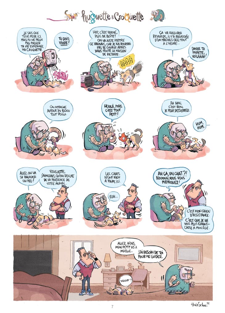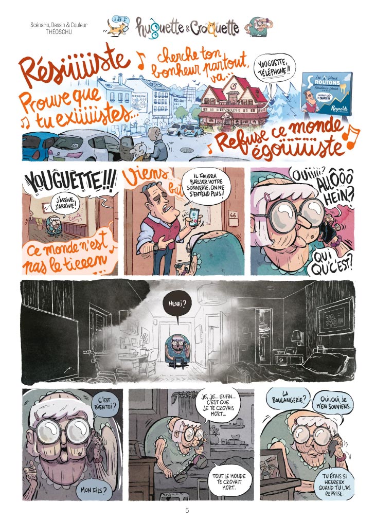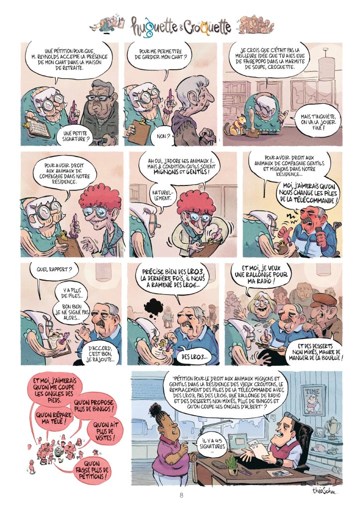 Cette semaine, le journal Spirou accueille une nouvelle résidente un brin révolutionnaire : Huguette (et son chat croquette). Ça va déménager chez « Les Vieux Croûtons »…