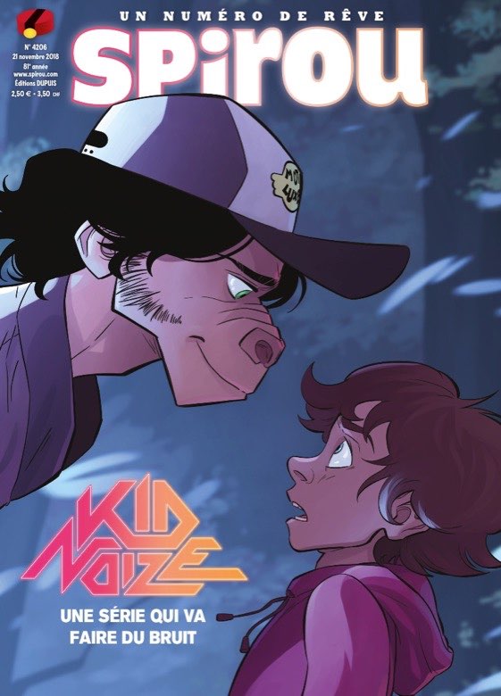 Un héros d’un genre tout nouveau a débarqué dans SPIROU : il a une tête de singe, vit dans un monde parallèle, et est capable de voyager dans le nôtre, où il livre de mystérieuses boîtes… Kid Noize (le vrai, le DJ) a décidé de se mettre en scène, avec sa tête de singe et tout son univers graphique bien personnel, dans une série d’aventures fantastiques avec Otocto au dessin et l’aide de Kid Toussaint comme coscénariste. Montez le son et profitez-en, c’est une avant-première exclusive du journal SPIROU !