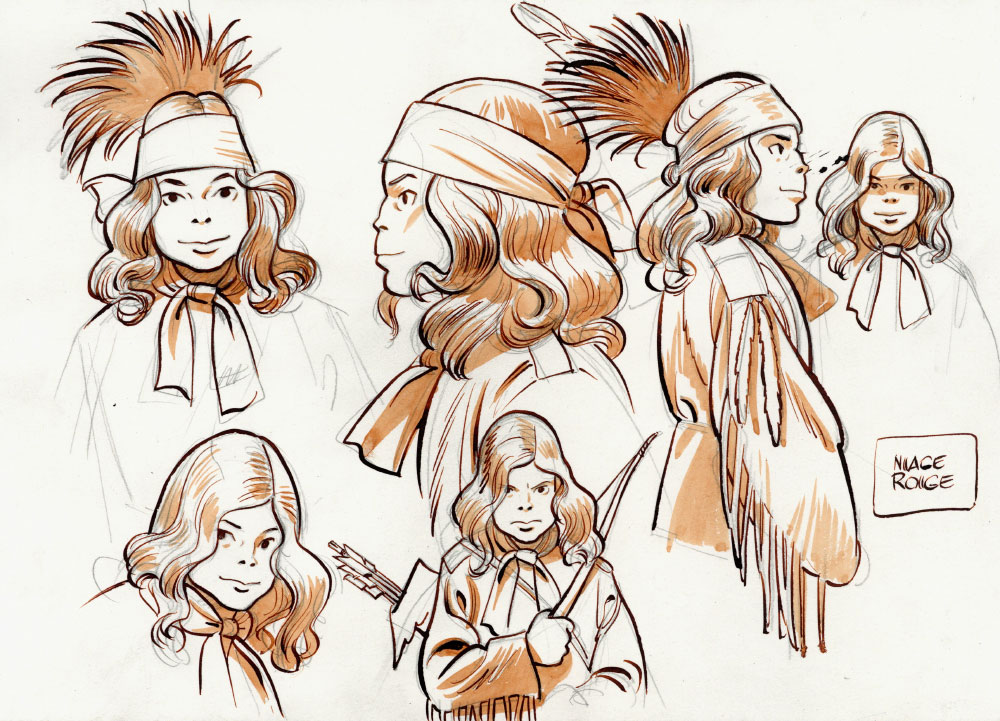 Nuage rouge a été élevé par les Pieds-Bleus, tribu mythique de l’univers Lucky Luke. Mais je leur ai donné l’histoire et les traditions des Indiens lakotas. Le titre de cet album ne fait pas référence à l’album « La longue marche » de Blueberry, mais plutôt au voyage que firent les Lakotas après la bataille de Little Bighorn. Victorieux du général Custer, ils avaient toutefois préféré partir vers le Canada par peur des représailles. Avec « La longue marche de Lucky Luke », je voulais un western très enneigé, très proche de la nature, évoquant le film « Jeremiah Johnson », qui m’avait bouleversé. Je voulais aussi une aventure très « pro-indienne« .