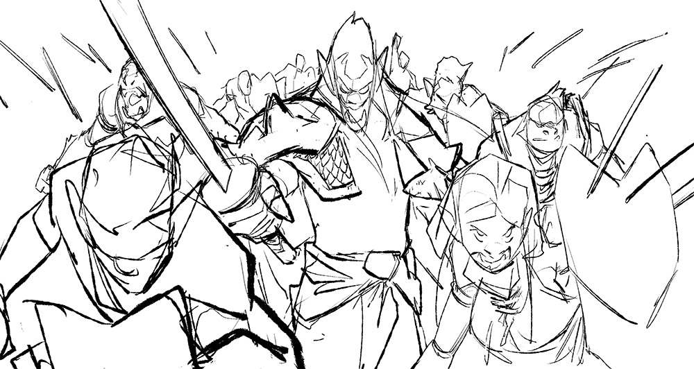 Les scènes d’action sont surtout amusantes à dessiner. Je les prends comme un challenge, en termes de mise en scène. Le plus difficile, c’est de faire en sorte de ne pas perdre le lecteur d’une case à l’autre quand ça bouge beaucoup et que les personnages doivent faire face à des situations complexes. Parfois, j’ai quand même dû demander à Denis plus de place, par exemple sur une scène d’avalanche importante, dans « L’envol de Trycia ». Heureusement, je lui en ai parlé tôt, à un moment où le scénario pouvait encore bouger ! Même si je raisonne en termes de narration BD, et pas en termes de cinéma, le fait que j’aie étudié le cinéma et l’animation m’aide beaucoup. J’ai des amis qui me disent que je pourrais me permettre, en BD, de tricher plus qu’au cinéma, avec des faux raccords et des positions pas identiques d’une case à l’autre, ce qui permet des angles de caméra moins complexes. Mais je me l’interdis ! Je suis peut-être un peu rigide !