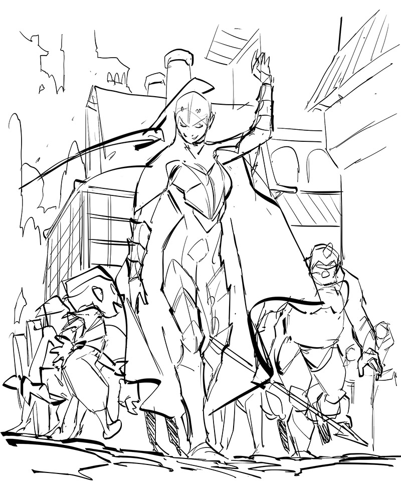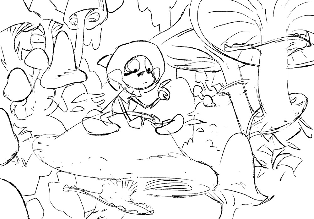 J’utilise le logiciel Clip studio pour l’encrage et Photoshop pour les couleurs. J’utilise une tablette Cintiq, sur laquelle je dessine comme sur une feuille, ainsi qu’une palette graphique classique, avec les traits du stylet projetés sur écran. J’aime bien alterner les deux. On a plus de perspective sur un dessin lorsqu’il apparaît sur un écran plus distant. Ça me permet de varier mon travail et de ne pas endormir mon cerveau. Et peut-être même que le résultat plaira aux lecteurs, qui sait !