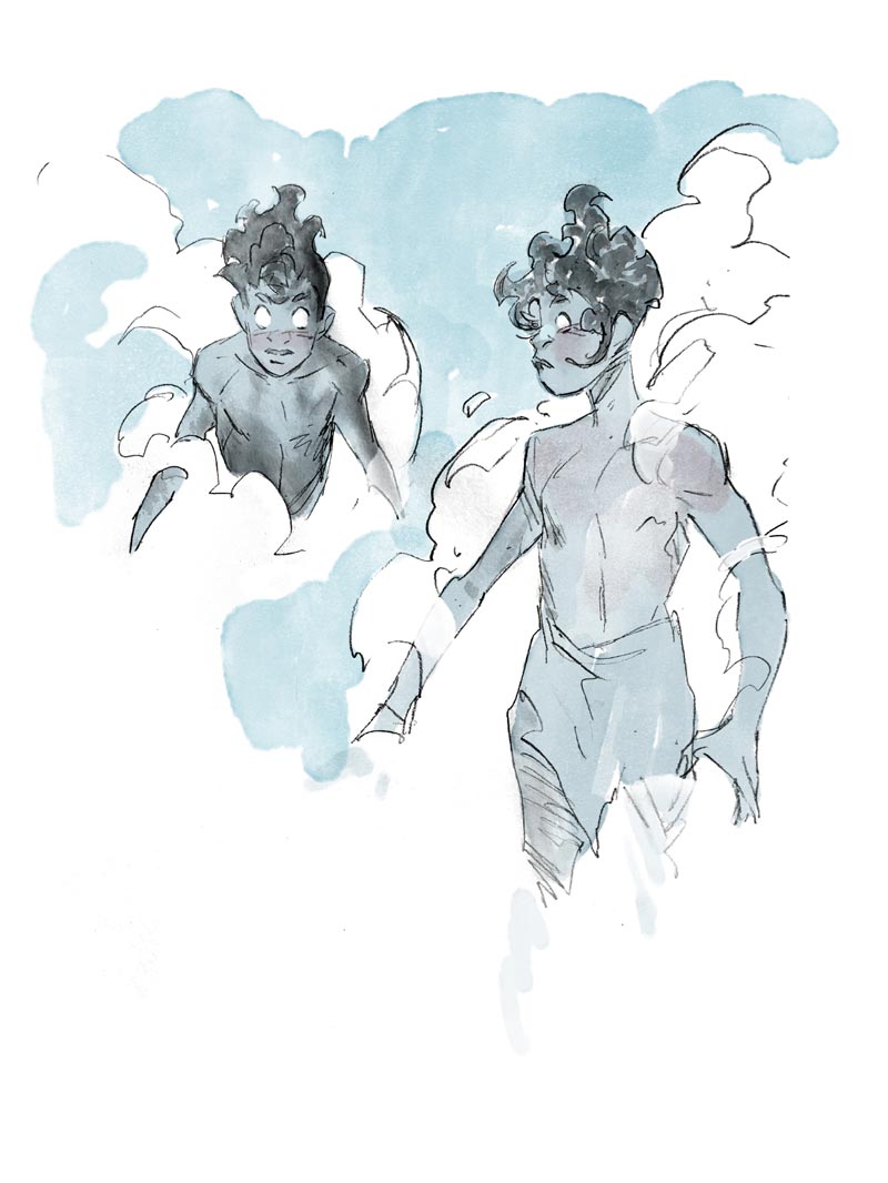 Je réalise d’abord un storyboard de manière traditionnelle, avec papier et crayon, sur un tout petit format. Puis je fais une photo de ce « board » avec mon téléphone, que je m’envoie pour le retravailler numériquement sur une tablette Cintiq, où je gère dessin et encrage. Je travaille ensuite mes couleurs sur mon ordinateur, dont l’écran est de meilleure qualité que celui de ma tablette !