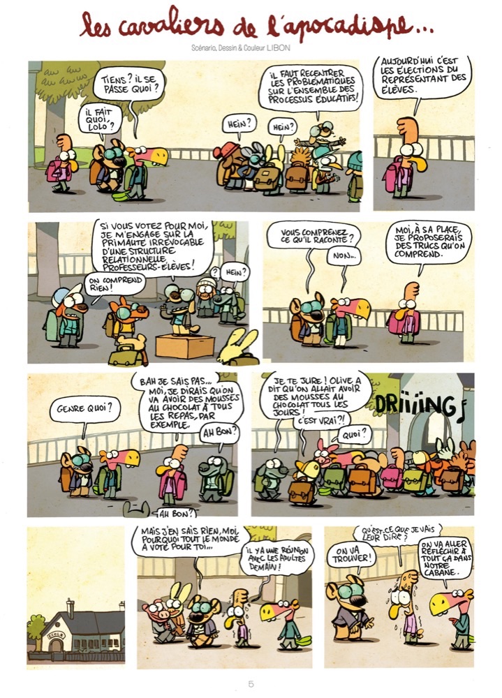 En lisant Les Cavaliers de l’apocadispe ont des responsabilités, un tout nouvel épisode où Olive devient délégué de classe, on s’est rendu compte qu’à la rédac, ben, de délégué, on n’en avait pas. Et si c’était Libon qui s’y collait ? On lui a demandé son programme…