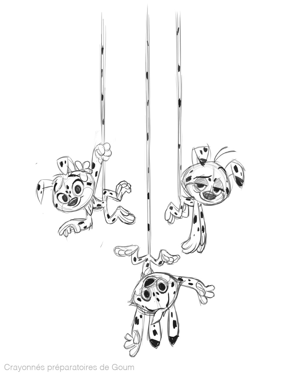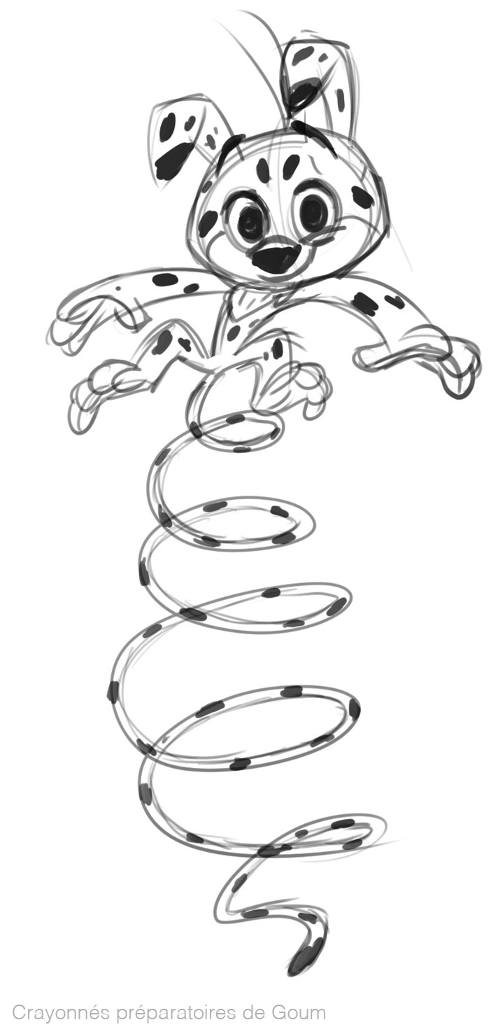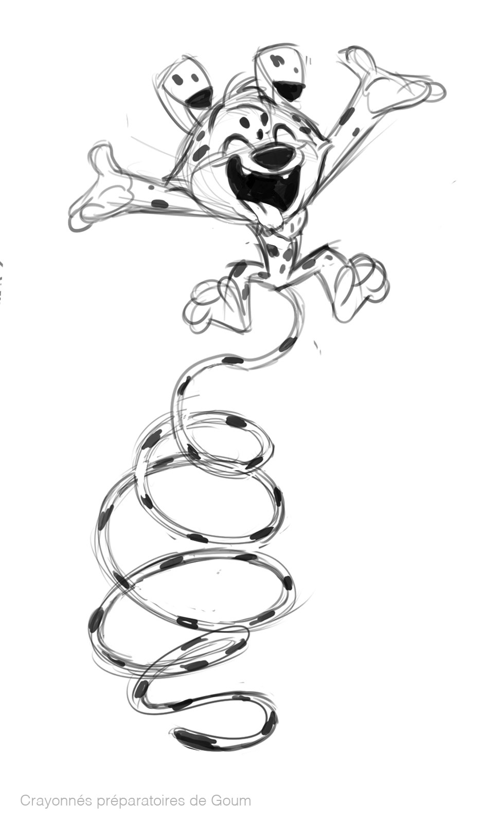 Oui ! Dans une BD, c’est simple : on a une case avec la queue normale, ensuite une autre case avec la queue en forme de poing. C’est l’imagination du lecteur qui fait le raccord. En animation, on doit montrer toutes les étapes ! Bon, j’avoue : on a un peu triché dans Les Marsupilamis avec une succession de plans très rapide. Un plan avec la queue normale, un deuxième avec une queue intermédiaire et un dernier avec la queue roulée en boule. C’est presque de la prestidigitation !