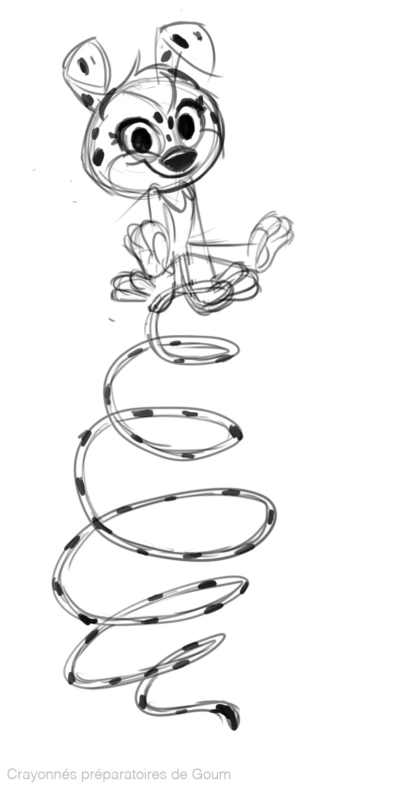 La queue, qui est presque un personnage à part entière ! On a beaucoup travaillé sur cet élément avant même de commencer l’animation à proprement parler. C’est ce qu’on appelle la phase de « Rig », où l’on construit les squelettes virtuels des personnages, comme des marionnettes, afin de voir comment on va les faire bouger. Des contrôleurs font des essais sur ces squelettes pour voir s’ils fonctionnent. Il fallait que l’on construise une queue capable de devenir un ressort, de se rouler en poing, d’être utilisée comme liane… Les concepteurs se sont un peu arraché les cheveux mais se sont surtout pris au jeu !