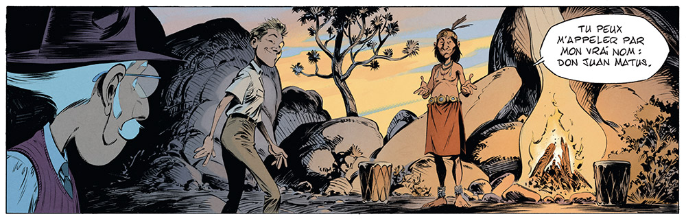 Beka : Donji est inspiré d’un chaman indien qui inspira Moebius, Jodorowsky ainsi que l’écrivain américain Carlos Castaneda ! Et comme j’ai lu que Richard Feynman avait appris le tambour avec un Indien, je ne me pouvais évidemment pas me passer de ce personnage !