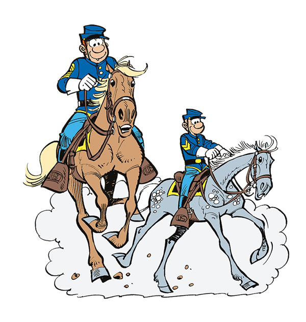 Travailler avec Lambil, c’est un rêve de gosse pour moi qui suis fan de son travail depuis toujours. Et c’est une belle aventure humaine. Il a l’âge de mon papa, ancien lecteur de SPIROU, qui m’avait abonné au journal quand j’avais 8 ans. C’est un plaisir d’échanger avec lui, il y a un côté transgénérationnel qui est l’âme du journal Spirou. Un journal dont je garde précieusement tous les numéros, depuis le premier de 1938. Je me régale à lui proposer notamment des scènes de nuit, pour lesquelles il excelle. Tout le monde connaît bien sûr les Tuniques Bleues en couleurs (sinon elles seraient blanches), mais les planches originales de Lambil sont très belles, il maîtrise l’équilibre des noirs et des blancs avec une science héritée des grands maîtres américains et de Jijé.