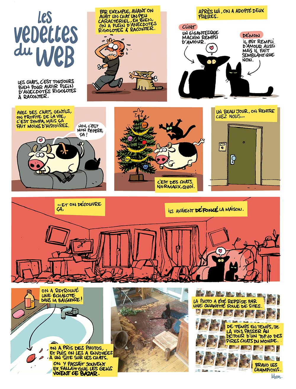Après l’avoir laissé réinventer tous les animaux de compagnie des plus grands héros de BD dans le Spirou n°4335, Libon nous parle de ses bébêtes intimes. Car il paraît que les chats de Libon, c’est pas des cadeaux !