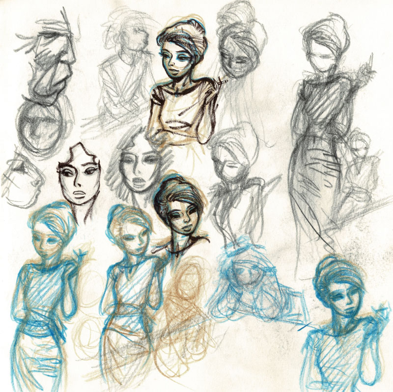 Laurent Verron : Quand on dessine un personnage, on est ce personnage, il ne s’agit pas juste d’assembler des traits entre eux. Je me sens proche de Mademoiselle J. J’ai toujours été entouré de femmes, mes sœurs, mes belles-filles, me permettant ainsi d’imaginer la gestuelle de Juliette dans les scènes que décrit Yves. Dessiner une femme, avec des attitudes physiques tellement éloignées de celles de l’homme que je suis, est un exercice aussi exigeant qu’intéressant.