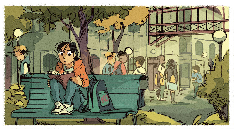 Carole Maurel : J’ai dessiné les bagarres dans un style plus « punchy », oui. Avec des couleurs plus fluos, plus saturées, et des cadrages très « shōnen » !