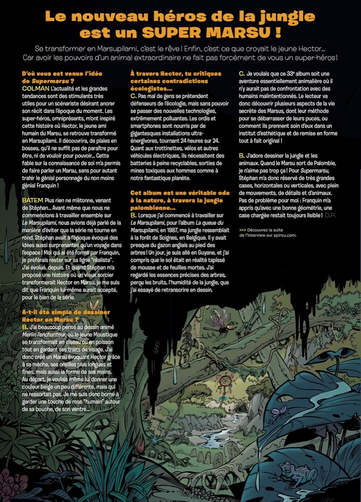 – Premier épisode de « Supermarsu », la nouvelle aventure de Marsupilami.