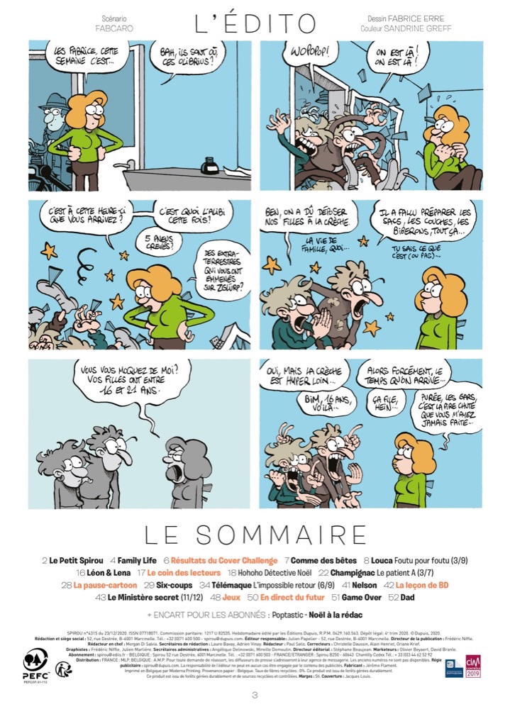 C’est déjà l’avant-dernier numéro de l’année ! La rédaction vous souhaite de très bonnes fêtes de fin d’année et, surtout, beaucoup de joie et bonne humeur (déjà garanties une fois par semaine avec Spirou).
