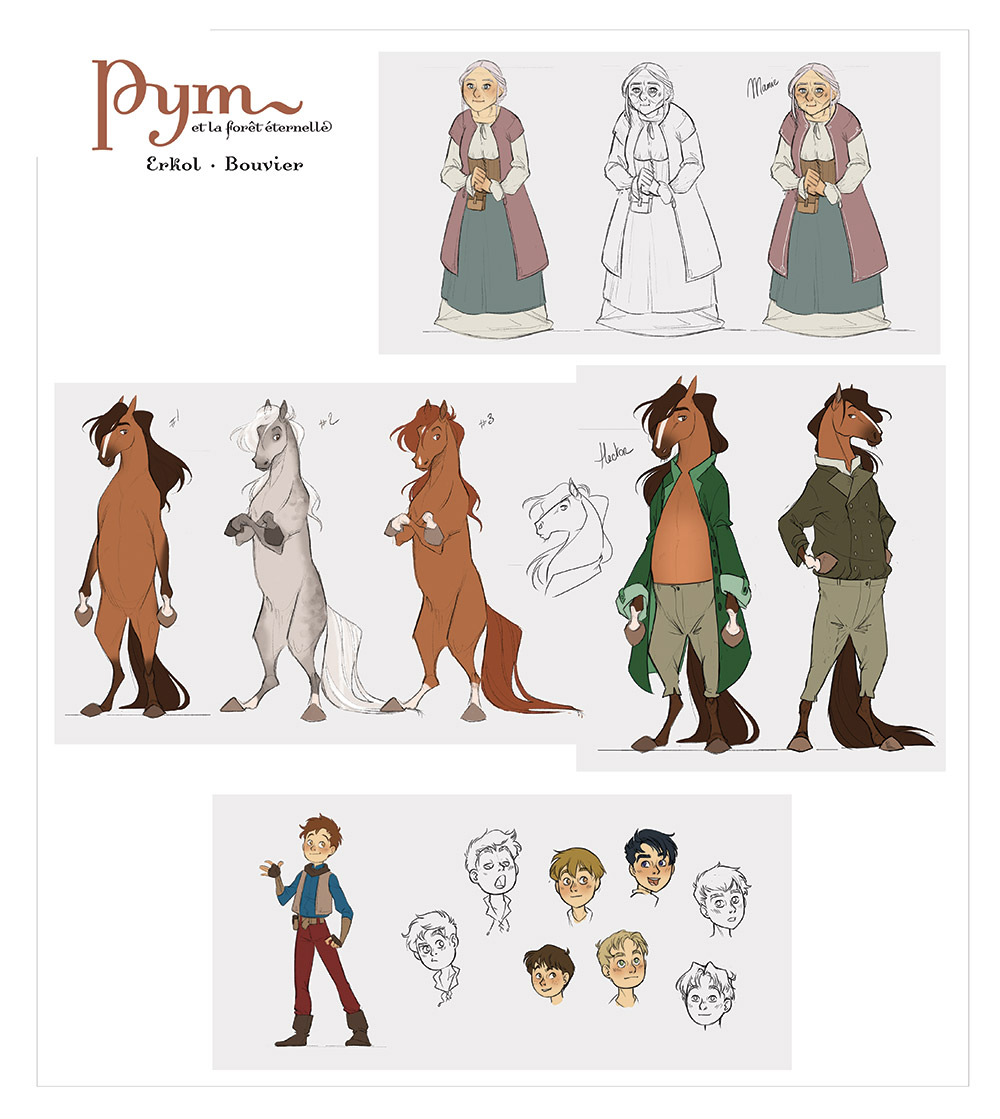 Clémentine Bouvier : J’ai travaillé dans l’illustration avant de faire de la BD. Lorsque Fuat m’a contactée, j’ai vite compris que Pym me permettrait de dessiner des tas de trucs géniaux et beaucoup d’émotions… La grosse difficulté aura été de créer un cheval marchant sur ses pattes arrière de manière crédible. Mais la coupe de cheveux de Pym n’a pas été simple à trouver non plus !