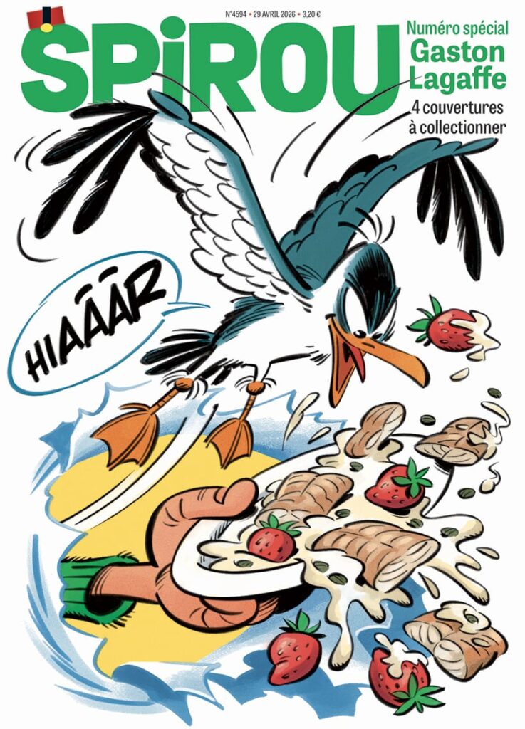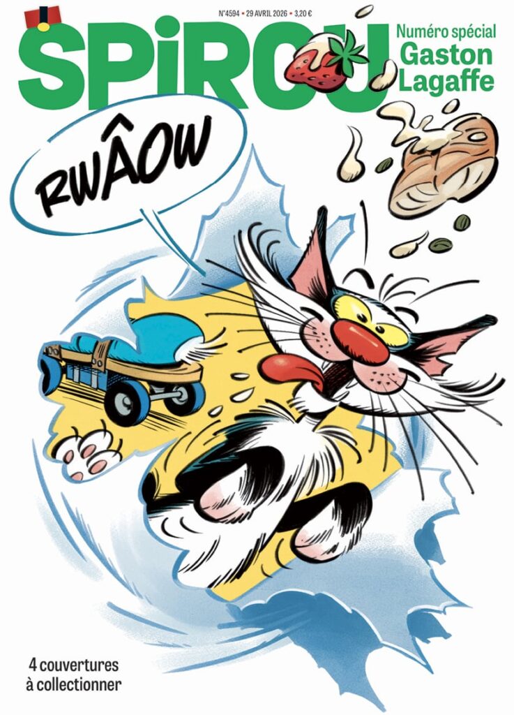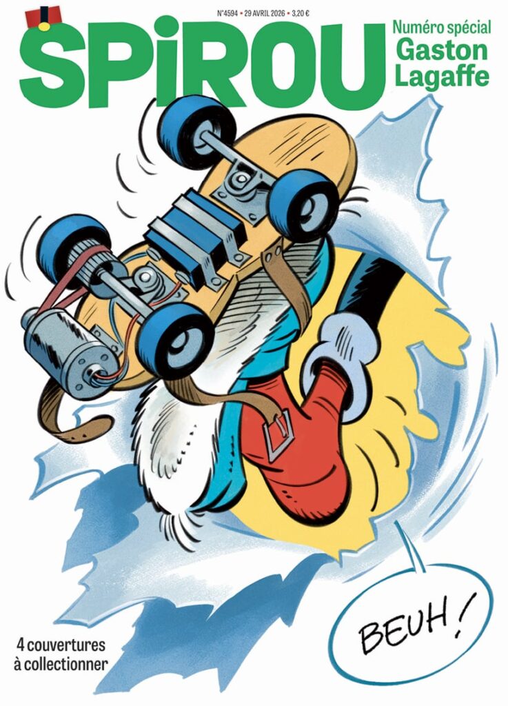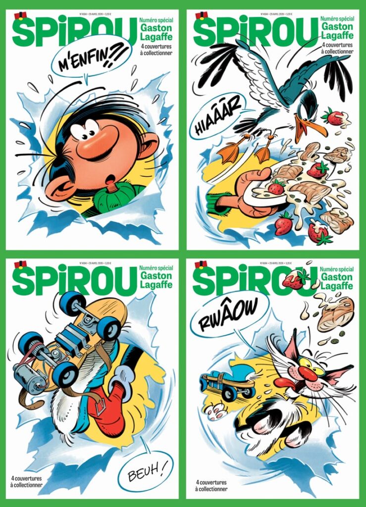Pour marquer le coup du retour de Gaston Lagaffe dans ses pages, le journal Spirou vous propose non pas une, ni deux, ni trois, mais… quatre couvertures différentes à collectionner pour son numéro spécial Gaston Lagaffe (sortie le 29 avril 2026 en kiosque) !
