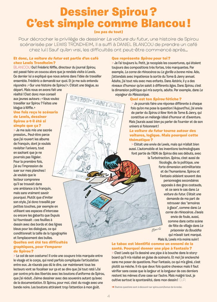 Pour décrocher le privilège de dessiner « La voiture du futur », une histoire courte de Spirou, réalisée dans le cadre de de « l’année des héros », scénarisée par Lewis Trondheim, il a suffi à Daniel Blancou de prendre un café chez lui ! Sauf qu’en vrai, les difficultés ont peut-être commencé après… On vous laisse découvrir tout cela dans le journal Spirou cette semaine.