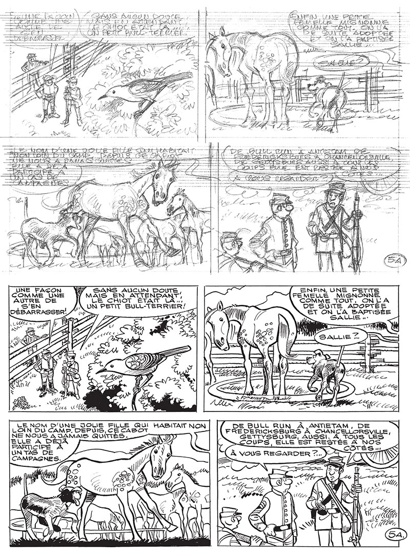 Saviez-vous que cette série a une illustre ascendance, puisqu’elle a été initialement conçue pour pallier le départ de Lucky Luke à la concurrence ? La place du western humoristique restée vacante au sommaire du Journal de Spirou, on lui cherche un successeur, et la série de Cauvin et Salvérius est l’heureuse élue. Alors que d’autres auraient repris le schéma du héros classique, l’ami Raoul prend le contre-pied du cow-boy solitaire et imagine les aventures d’un régiment, sur le modèle de ceux décrits par John Ford dans sa fameuse trilogie sur la cavalerie : Le massacre de fort Apache, La charge héroïque et Rio Grande, ou dans le feuilleton télévisé Rintintin.