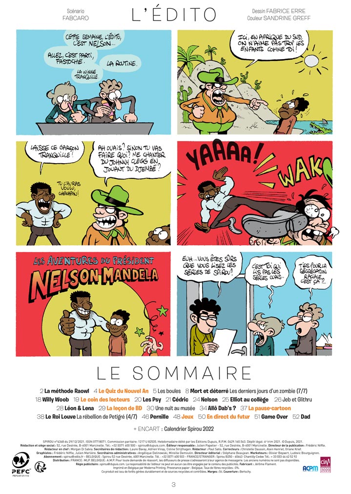 Et en supplément pour les abonnés : Calendrier Spirou 2022