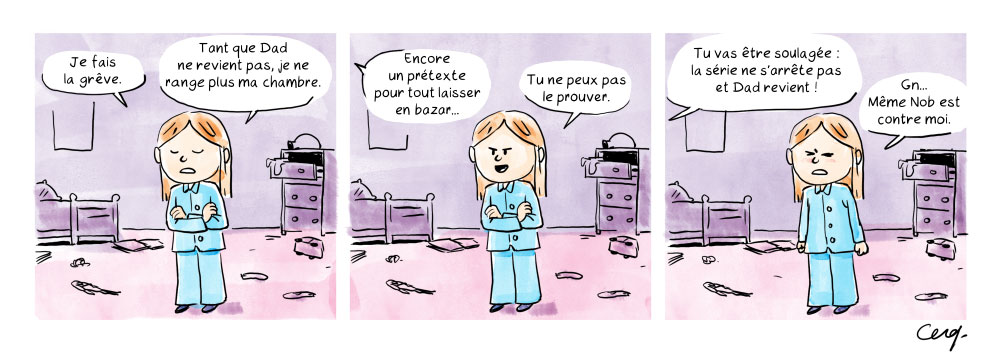 Tout ça, c’est grâce aux lectrices et lecteurs ! Dans leurs mails, beaucoup m’ont expliqué qu’ils voulaient que Dad se poursuive afin de voir comment allaient évoluer ces personnages qu’ils aiment tant. Certains espèrent même voir un jour Bébérénice devenir maman ! Moi qui me demandais s’il était possible de faire évoluer Dad sans trahir les lecteurs, j’ai eu ma réponse ! Et même des milliers de réponses !