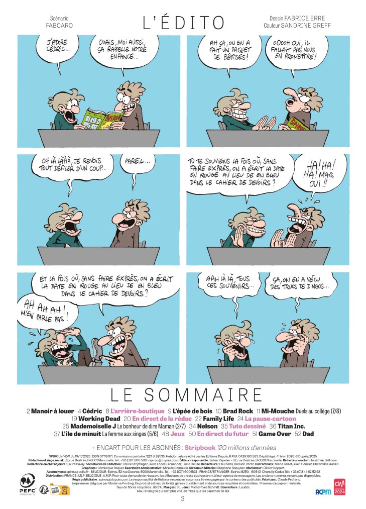 C’est une histoire inédite de Cédric que Laudec nous offre cette semaine dans le journal Spirou. Une vraie tranche de vie comme on les aime !